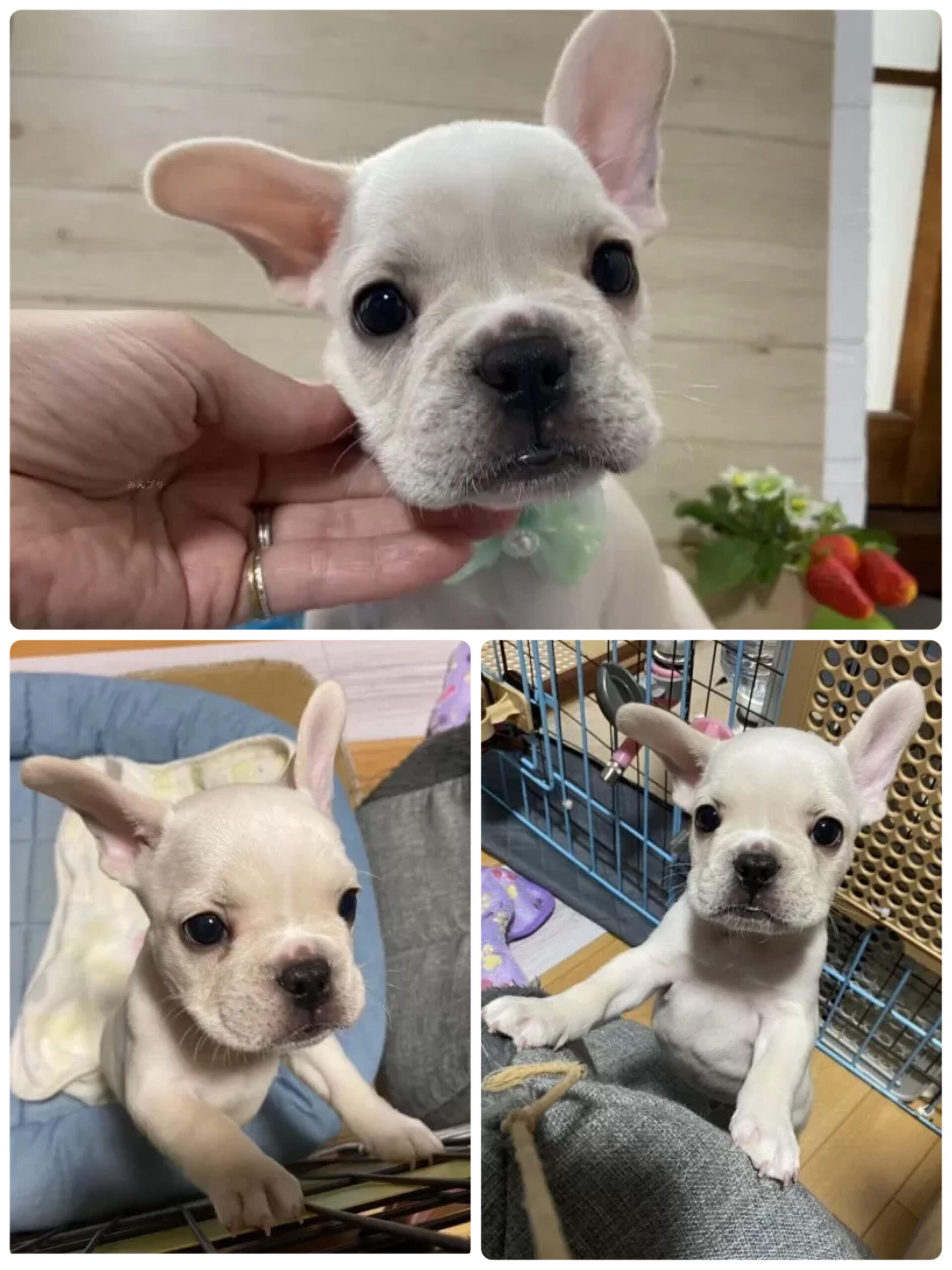 2024年1月20日産まれ ママ レモンちゃん(3月17日~お迎え可)フレンチブルドッククリーム 男の子 35万円(ワクチン代別)お引渡し日より、30日間の保険を弊社負担で付けさせて頂きます。フード約1ヵ月分、他、謎のプレゼントあり。お耳がたってきました!とてもかわいく育っているので是非会いに来てください。遺伝子病のDMは、発症リスクはありません。ご安心下さい。